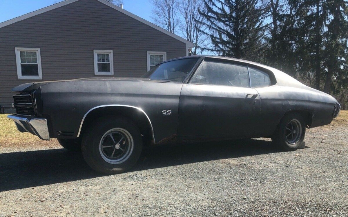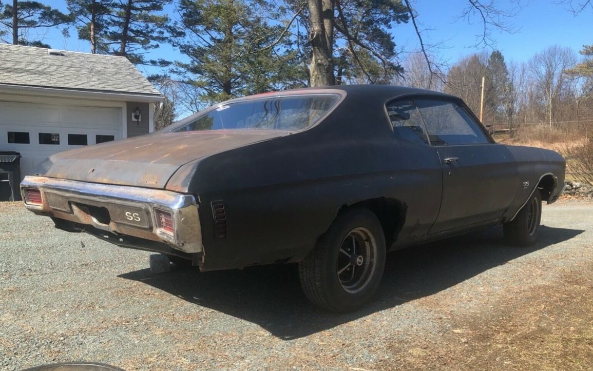 This 1970 Chevelle SS was built on January 19, 1970, in the Oshawa, Ontario, Canada plant. Back then it was a little bit of a sleeper with one-color paint, no SS stripes, and a vinyl top. It is now located in East Greenbush, New York and can be found here on eBay with a requested opening bid of $6,000. There are some documents and paperwork that go along with the sale, which is a plus. There is quite a bit of work that needs to be done, but as you will see, this could be a really rewarding project. Have a look.