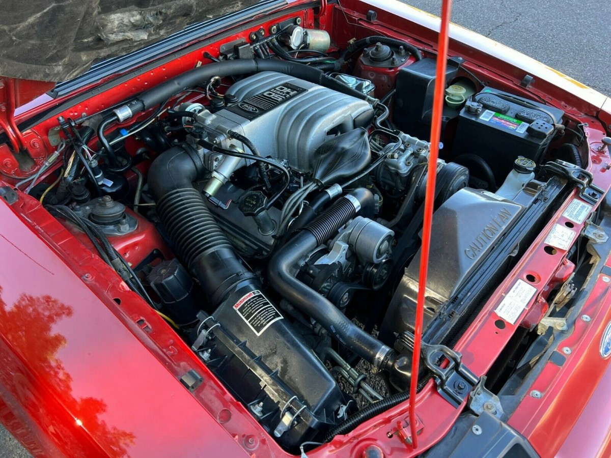 The excellent presentation of this Mustang continues when we open the doors and slide behind the wheel. The interior is trimmed in a combination of Deep Red cloth and vinyl, and its condition is exceptional for its age. There is no evidence of any issues, with the wear-prone outer edges of the bucket seats looking particularly clean. The dash, pad, and plastic have all avoided the type of deterioration that is common following long-term exposure to harsh UV rays. The interior is also nicely equipped, and every optional extra works as it should. The buyer will receive air conditioning, power windows, power locks, cruise control, a tilt wheel, and an AM/FM radio/cassette player.