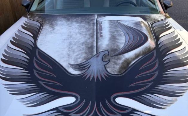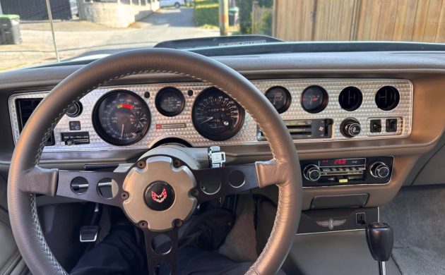 The white paint looks pretty good but it is obvious that the grey paint on the hood and roof have not fared as well. The seller has the original build sheet and states that everything works even the original A/C that has been converted to R134A. In 1980, Pontiac launched a turbocharged 301 cubic inch V8 engine to enhance its performance lineup since it was reducing cubic inch displacement. Despite the model’s appealing design, Trans Am sales declined during this period. Nevertheless, Pontiac continued to offer vehicles recognized for their handling capabilities. The turbocharged V8, designated as LU8, was exclusively available in the 1980-1981 Firebird Trans Am and Formula models. The Turbo 301 cubic inch (4.9 liter) engine produced 210 horsepower in 1980 and was rated at 200 horsepower in 1981. The LU8 featured a Garrett TB305 turbocharger and a Rochester Quadrajet four-barrel carburetor.