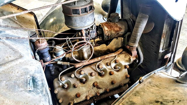 The exterior has held out rather well through time but there are a few problem areas to point out. The front fenders and running boards have a fair amount of surface rust, and there is a baseball sized rot area in the passenger front fender. There is various surface rust all over this Ford, but little in the way of rot. The under body is covered with surface rust, but the surface rust is pretty thick, where the metal appears to have become thin. One problem that is not so pretty is dent in the rear section of the body near the rear window. It would appear something fell, or punched the metal, causing a small rip in the steel. This isn’t pleasant, but it certainly isn’t the end of the world for this Ford. Looking to make a great and fun project, would you jump on this fairly priced Ford?