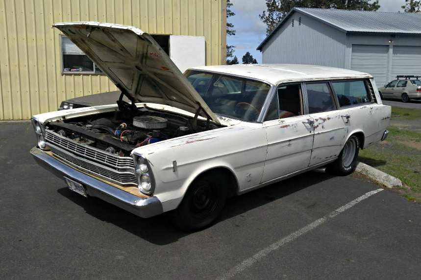 I just looked at a bunch of photos of other 66 Fairlane wagons. Most of them had a chrome strip down the side where this one’s is white. I suspect a Earl Shieb $29.95 paint job in its past.