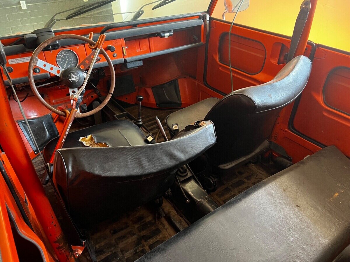 My uncle had a orange 73 thing in the 80s. His had a tan interior. Also swear it was a brighter shade of orange. Any who it was great. Put the top and windshield down. Take the doors off. Thrilling. Also thrilling every time you turned on the heat in the winter. Whoosh from the gas heater. Don’t recall ever hearing of any issues there though.