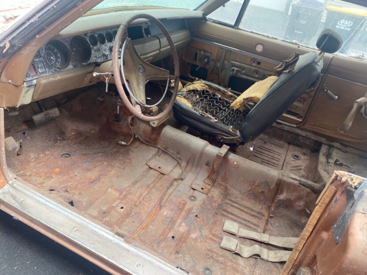 The original owner ordered this Charger in Dark Bronze with a White vinyl top. It would have looked glorious in its prime, but time has exacted a heavy toll on this classic. The vinyl is shredded, and the paint is well past its best, but that is just the beginning. It carries the rust problems that afflicted many Mopar products from this period. However, it might not be a lost cause. The rear quarter panels are toast, with further rust in other lower extremities, the floors, and the trunk pan. That sounds pretty awful, but the seller says the rails are rock-solid. That suggests there are no structural issues of note, meaning a new owner with reasonable welding skills could source replacement steel to return the vehicle to a rust-free state. They still face a long shopping list because some trim pieces are beyond restoration. However, the tinted glass looks okay under the layer of dust, and desirable features like the distinctive fuel cap and grille with concealed headlamps are intact.
