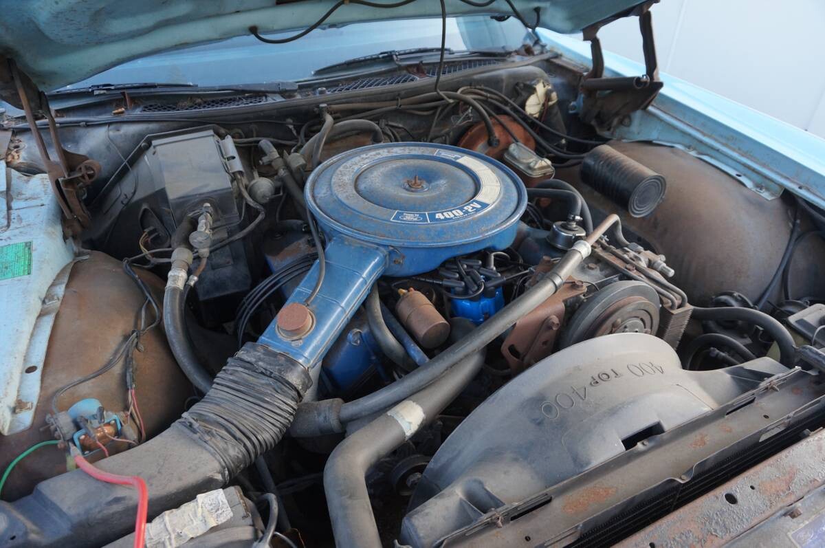 The LTD was a full-sized car until 1983, so the County Squire sits on a 121-inch wheelbase. With extra seating and the body’s bulk, the wagon’s curb weight was 500 lbs more than the LTD sedan. All that heft required plenty of horsepower to reach initial velocity, but unfortunately, due to looming emissions regulations, the 400 cu. in. V8 in this car was detuned from 260 hp one year prior to 172 hp in ’72. The factory transmission was a C6 automatic. This car has seen considerable mechanical work including a new transmission, new steering and brakes, new suspension, a rebuilt carburetor, new ignition, and new plugs and wires. The seller reports that the car starts, runs, and drives great.