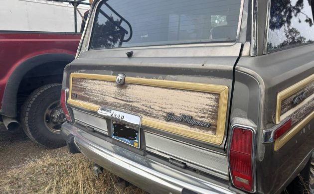 The color intrigued me, so I did some digging and I’m wondering if it’s Dover Gray Metallic. That was a color offered in 1989, and it’s one I can’t recall seeing – at least not often – when scanning Grand Wagoneers for sale (of course, in doing so, I learned they offered the truck in Hunter Green Metallic, and now I must find one.) The seller notes that it is heavily faded as is the wood trim, so you’ll need to plan for a paint job if you want it to look pristine. However, the attraction of old SUVs is they don’t have to be perfect, as they wear their battle scars with pride. The Jeep had a respectable dent/scrape on the driver’s side quarter panel, which may need some actual bodywork.