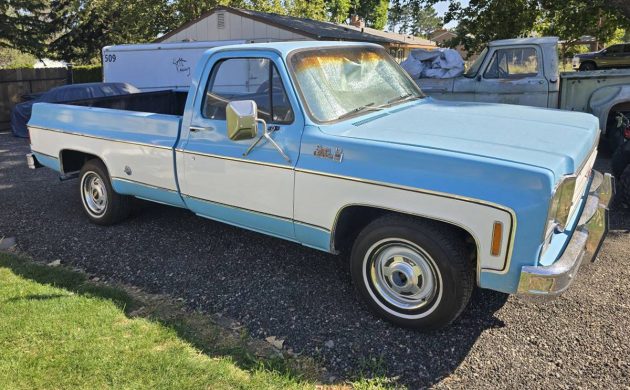 It’s hard to believe that 1975 was 50 years ago. Five decades, gone, poof. Where did all those years go? How many loved ones have gone since then, and how many kids, grandkids, and great-grandkids have been added to the mix? 50 years? I was riding around on my 1974 opaque blue Schwinn Varsity 10-speed, which is the same exact color as this 1975 GMC 1500 Sierra Grande pickup. The seller has it posted here on craigslist in Portland, Oregon, and they’re asking $8,000. Here is the original listing, and thanks to Rocco B. for the tip!