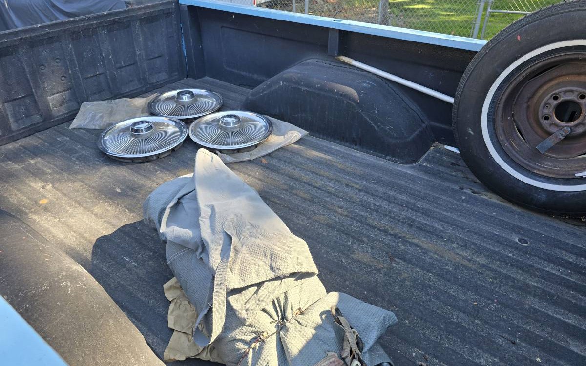Beautiful truck. Sad that the original buyer didn’t spring the extra sixty bucks or so for power brakes. For fifty years members of this family have lived with left legs larger in diameter than their right legs. The hub caps on it are 1976 and newer style, which in my opinion look a thousand times better than the ’75 and earlier caps.