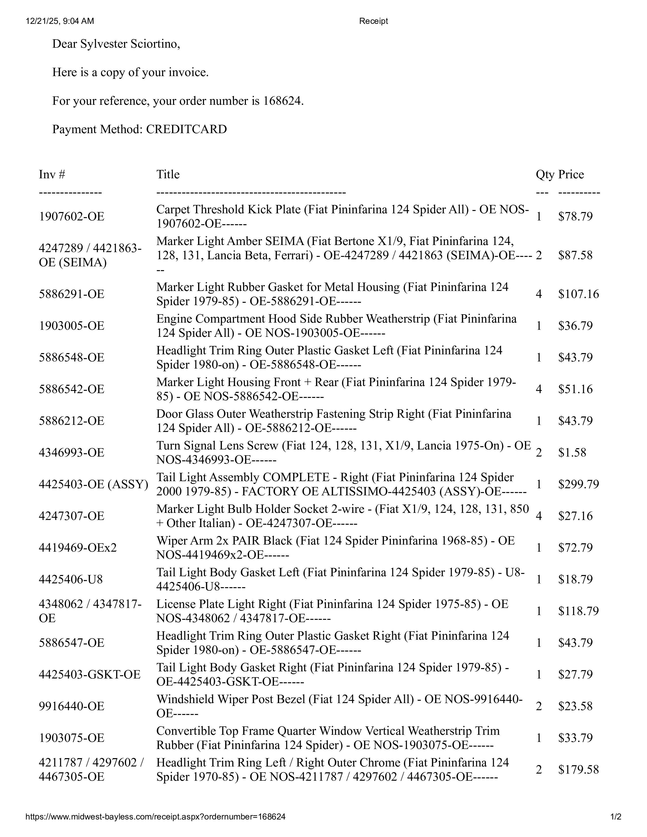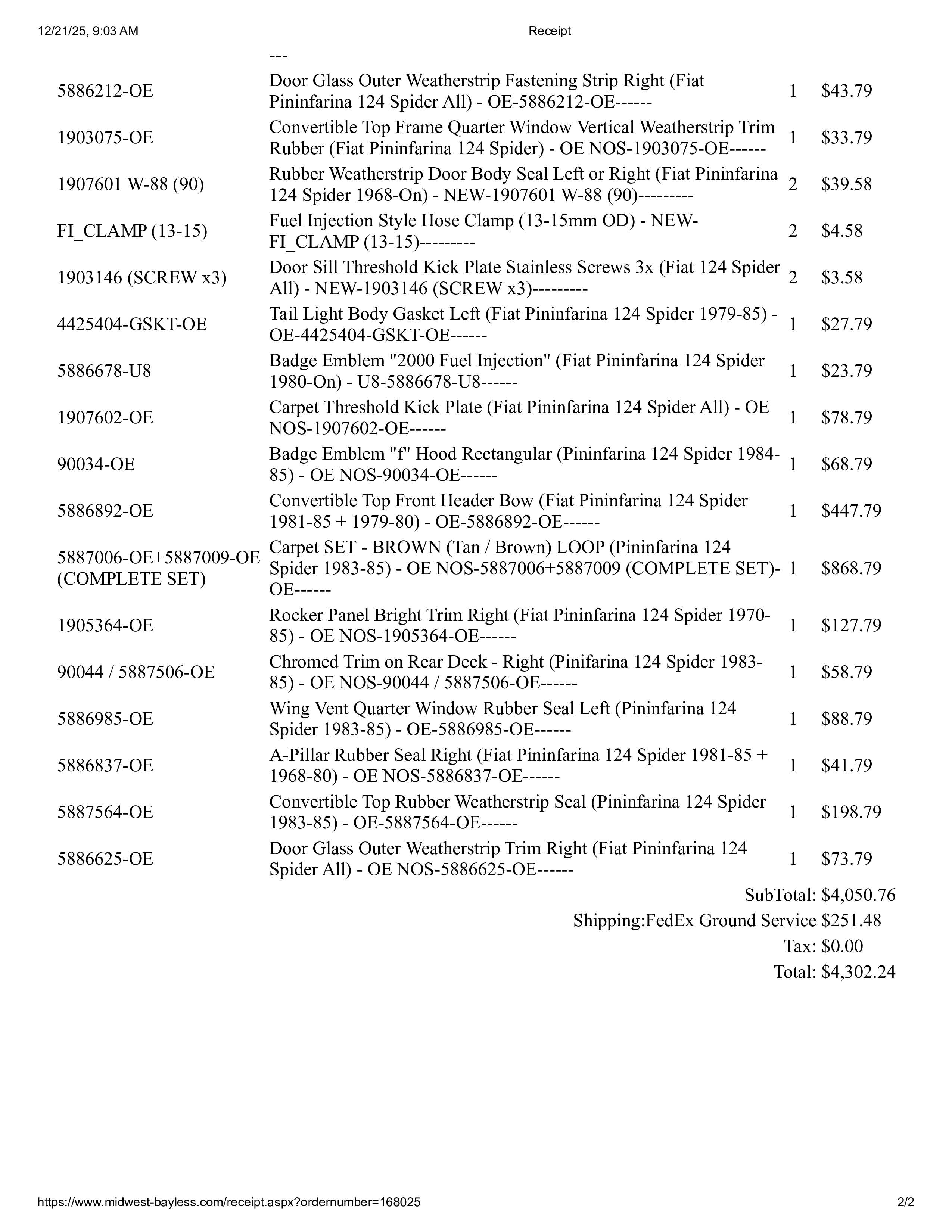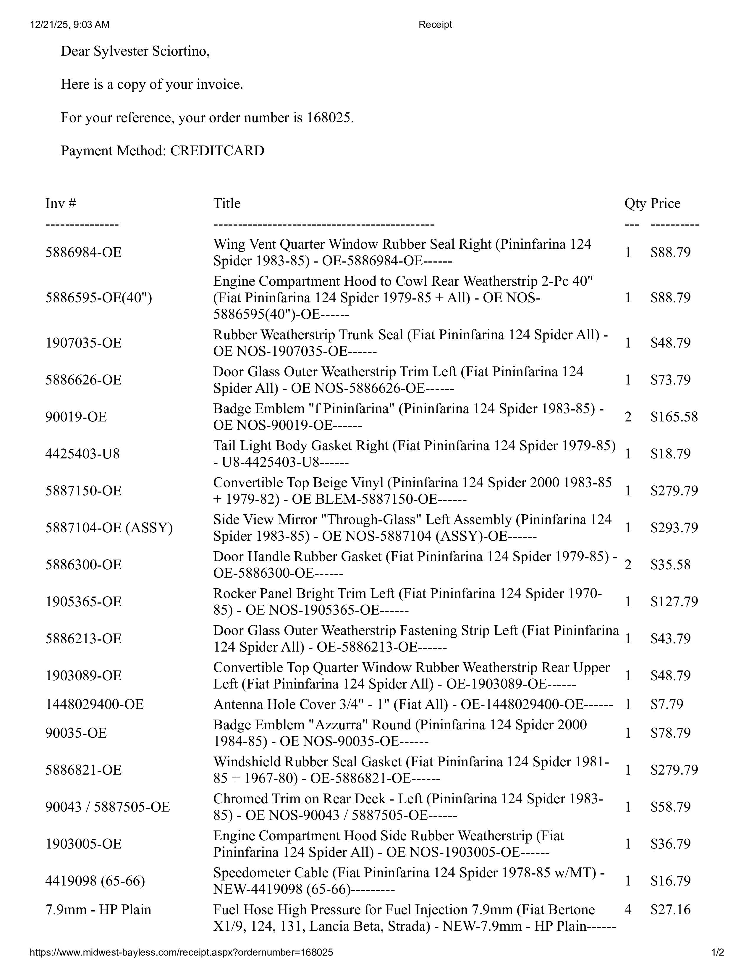 Fiat Spiders arer very common and have survived very well when taken care of. Thus parts are readily available from several vendors.
