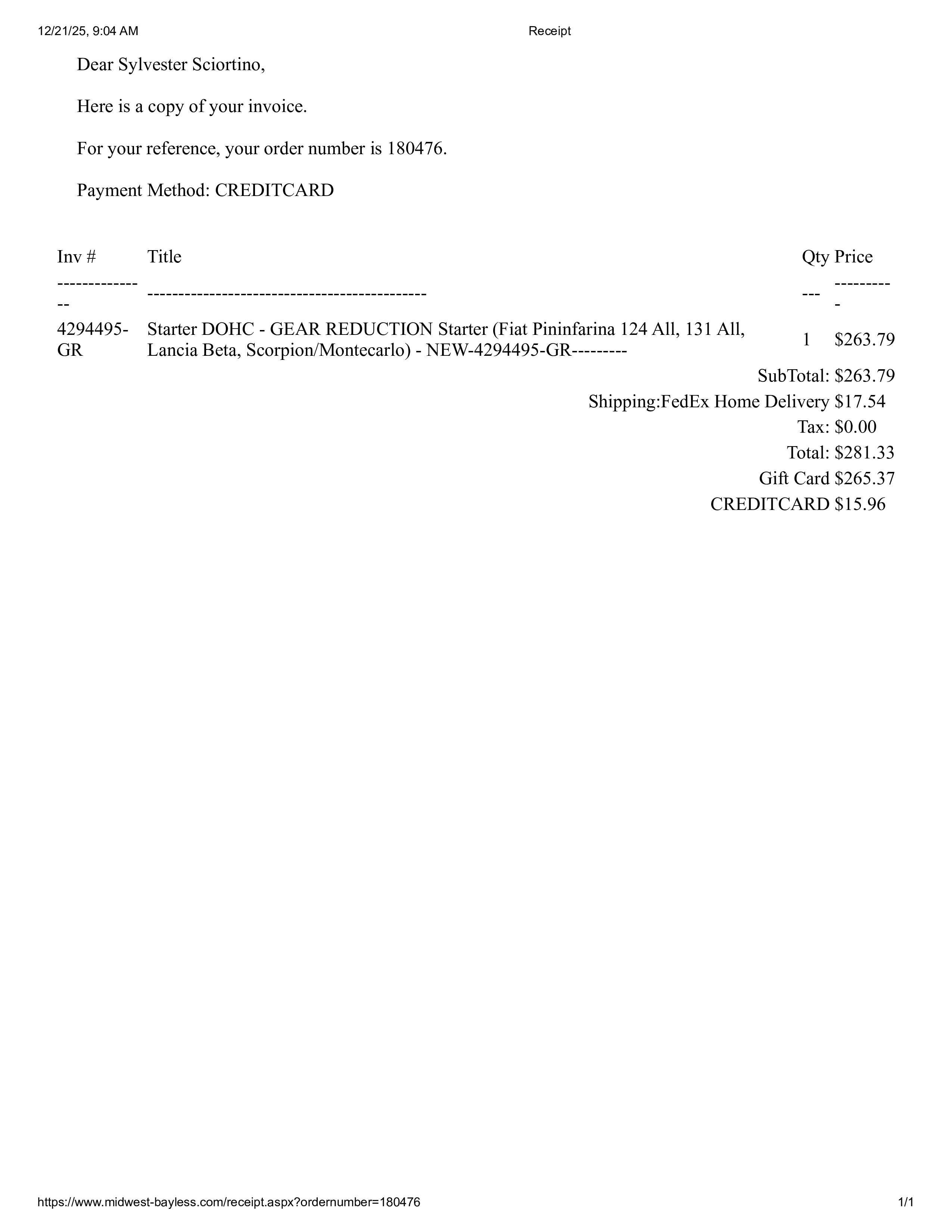 Correct. However, as an owner of a 1981 Fiat Spider I hope he gets every dollar of that! And for those who have never seen a reliable Fiat, I can send you a picture of mine