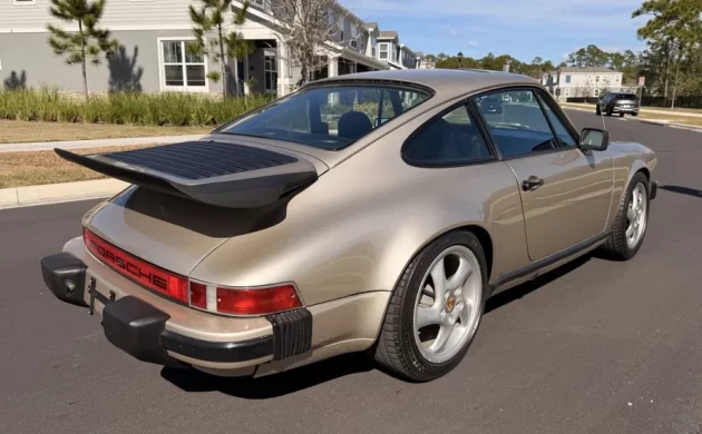 While some purists may not lover the whale-tail spoiler or the later Turbo-twist wheels, these are fairly benign upgrades in the grand scheme of things, and easily reversed if desired. The paint scheme of Platinum Metallic over black is somewhat unusual, hovering between gold and silver. The finish has some rough spots but overall looks honest and original. The black plastic bits still have good luster, and while I normally don’t like seeing larger wheels on these older SCs, I don’t mind them here; personally, I’d rather see the wing removed. The seller reports that there is no rust.