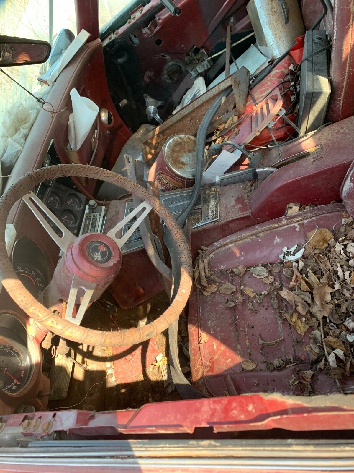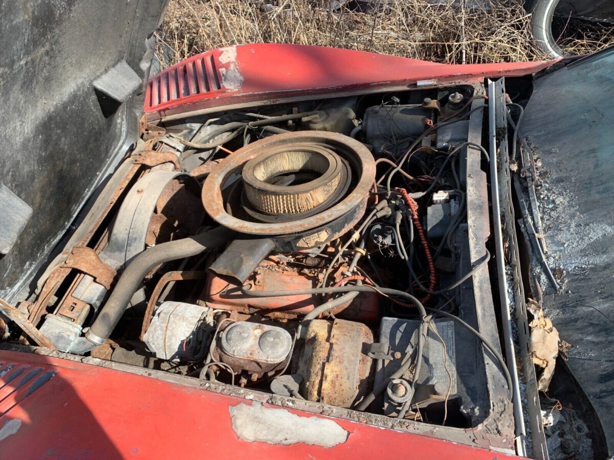 The red interior appears to be original and makes me genuinely curious about what the factory exterior color was. As I’ve opined before, I love specialty cars with red or oxblood upholstery like this Corvette has, as these colors were seen far less often than the more conventional black or tan. If this Corvette was originally black or white, these red leather seats with matching center console and carpets would make for a very handsome pairing; of course, as it currently sits, we’re a long way from this forgotten muscle car looking its Sunday best. Do you think this Corvette has a chance at being restored or is it too far gone?