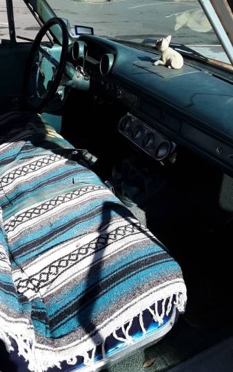 While the interior can be used as it is, it generally looks quite tatty, except for that relatively new carpet. There is no headliner, and blankets have been thrown over the seats, as the original covers need replacing. The owner describes the interior condition as rough, and that seems a fair assessment. The valve for the heater is jammed closed, so there is no heat, but a bright spot is that the air conditioning works perfectly.