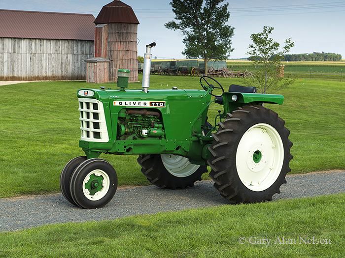 Although they all had a purpose, there can be a healthy debate among farmers and tractor collectors as to which front wheel configuration is more important to the overall history of farming, which was safer, easier to drive, more collectible, etc., between tricycle configuration tractors like this 77 Row-Crop or tractors having a wider stance. The Oliver 77 was made between 1948 and 1954, and they were beautifully designed, but the company wasn’t even in the same league, sales-wise, as the “other green tractor” company was, and still is. The 77 was available with a wide front axle, known as the “Standard“, the “Row-Crop” as seen here, and also as the “Orchard” with covered fenders and a lower profile. The company followed up with the Super 77 made until 1958. After that, the era of the old-style tractor was disappearing. Their 770 models, which followed the Super 77 Series, were much more modern in appearance.