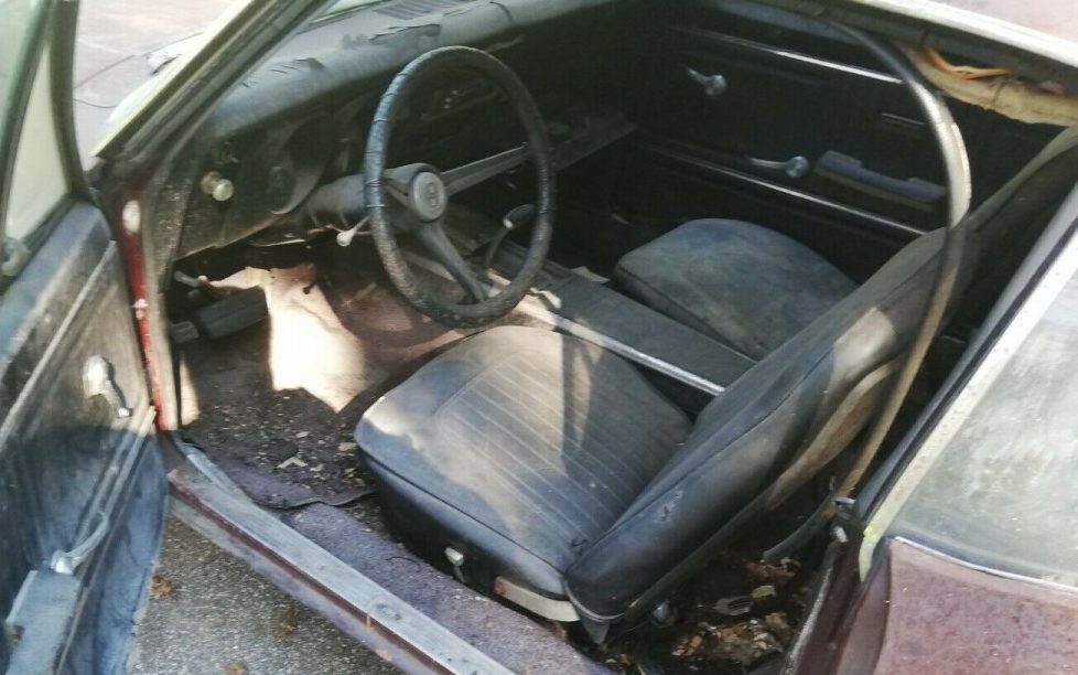 You can tell from the interior that this car has been sitting for a long time. The seller does say besides a few spots of rust, the car actually looks pretty solid. If I was thinking about buying this one, I would definitely inspect it in person and lift up as much of the carpet as I could. If it’s been sitting outside for an extended period, there could be hidden issues.
