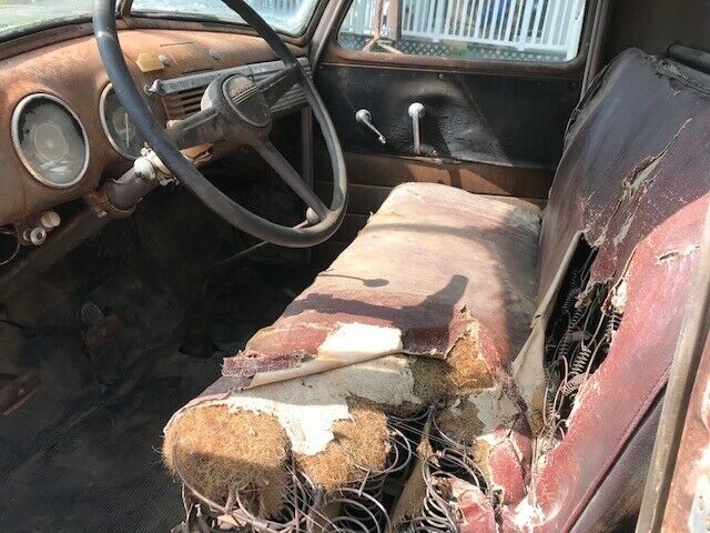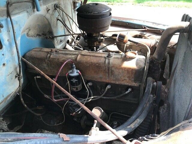This truck could be the poster child for patina and the seller decided to keep it as close to original as he could when he bought it. The body comes off as looking solid overall, with an assortment of dings and dents along with the original paint. The seller replaced the floor in the cab with new metal and put a sheet of plywood in the bed because the original wood was falling apart. The frame and underside look good and some of the many photos supplied focus on that area.