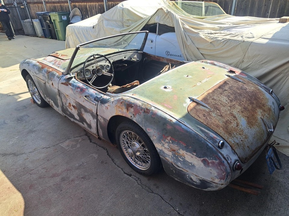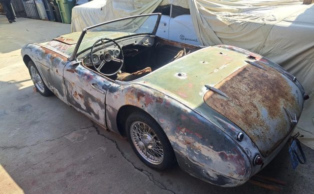 I was thrilled to find this 1961 Austin-Healey 3000 BN7 “farm find” as one of our tips this afternoon! I drove a ’61 3000 during college and have never forgotten the “Big Healey” experience, although mine was the more common “4-seat” model. This 3000 is located in Torrance, California, and is listed for sale here on eBay, where the buy-it-now price is $9,995. The seller is interested in offers, though, so who knows how inexpensively this British sports car could be yours?
