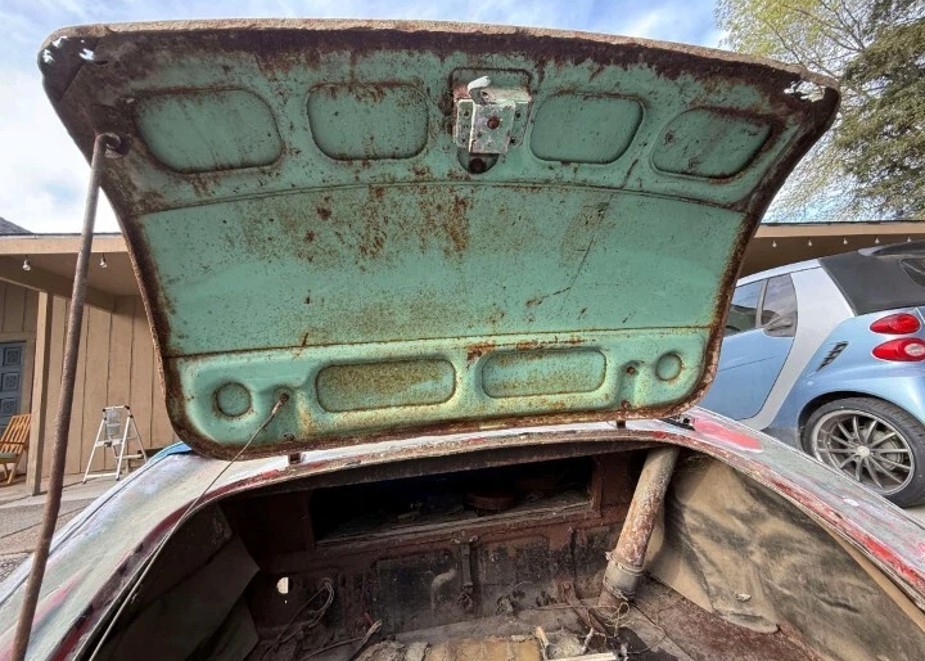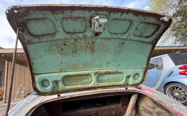 I’m guessing the trunk lid was not originally on this car, and considering the perforated lower edge, I’m not sure I wouldn’t look for another one. But if you are handy with a MIG or TIG welder and have plenty of time, it won’t takeĀ that much money for driver-level body work. And isn’t that what most folks want, anyway? I’m interested in your thoughts on perfect vs. driveable without wincing–please comment below!