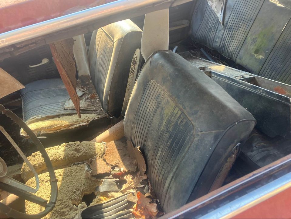 My biggest question when I see these Antique heaps listed at the prices they are asking is: WHY? Why leave a car like this outdoors with the window rolled down? There are definitely some salvagable parts, but at best, this is a parts car for a better car with a nicer interior imo…The other WHY I have is this: Why rebuild a Pontiac 389 and paint it RED?? Too many WHY’s with this old dead Goat! Someone needs to put it out of its misery…Glwts🙄