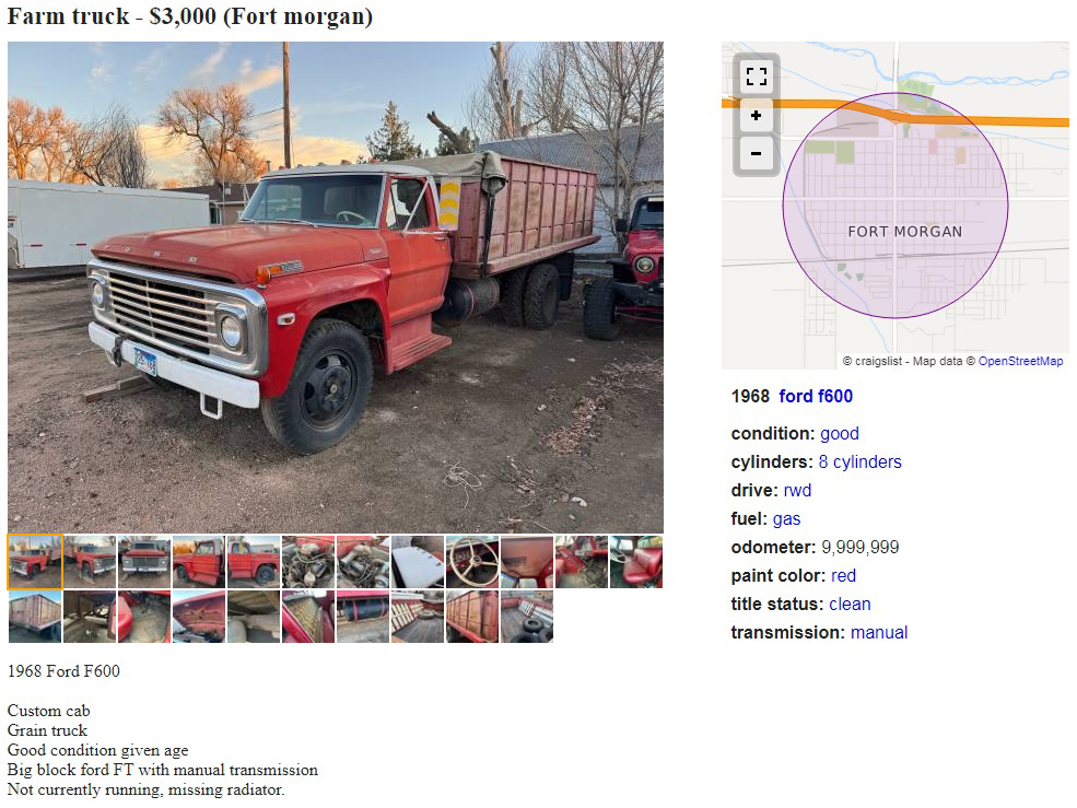 If I had a nickel (do they still make those?) for every time I’ve driven through Fort Morgan in the last two decades, I’d buy this truck and have it nut-and-bolt restored. Fort Morgan is in the heart of agricultural country in Colorado, so it makes sense that this cool truck would be located there.