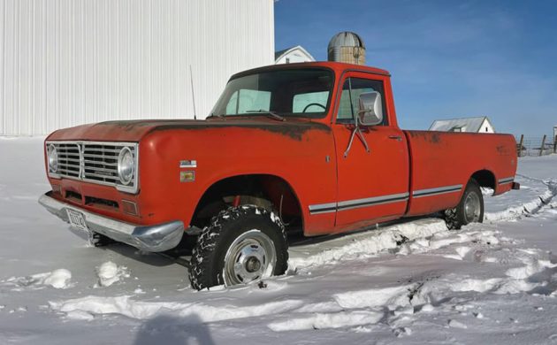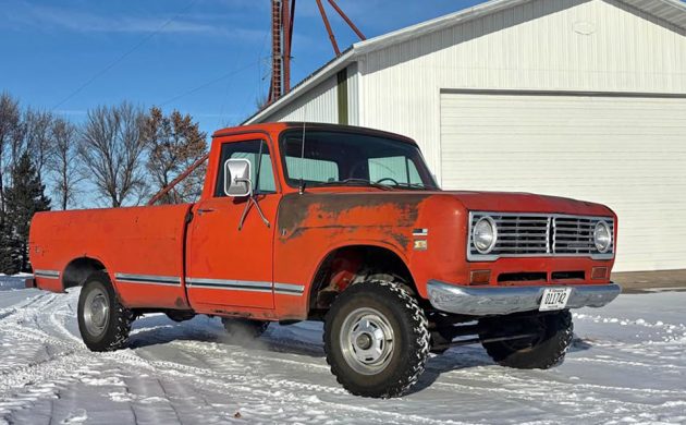 Highlighting some of the best and coolest photos in a very long time, and sporting a festive color that I believe is faded Flame Red, this 1973 International 1110 4×4 pickup looks like a nice, solid example of a classic “barn find” that is actually located on a farm! This 4×4 can be found listed here on Facebook Marketplace in Lafayette, Minnesota, and they’re asking $7,500. Here is the original listing, and thanks to T.J. for the tip!