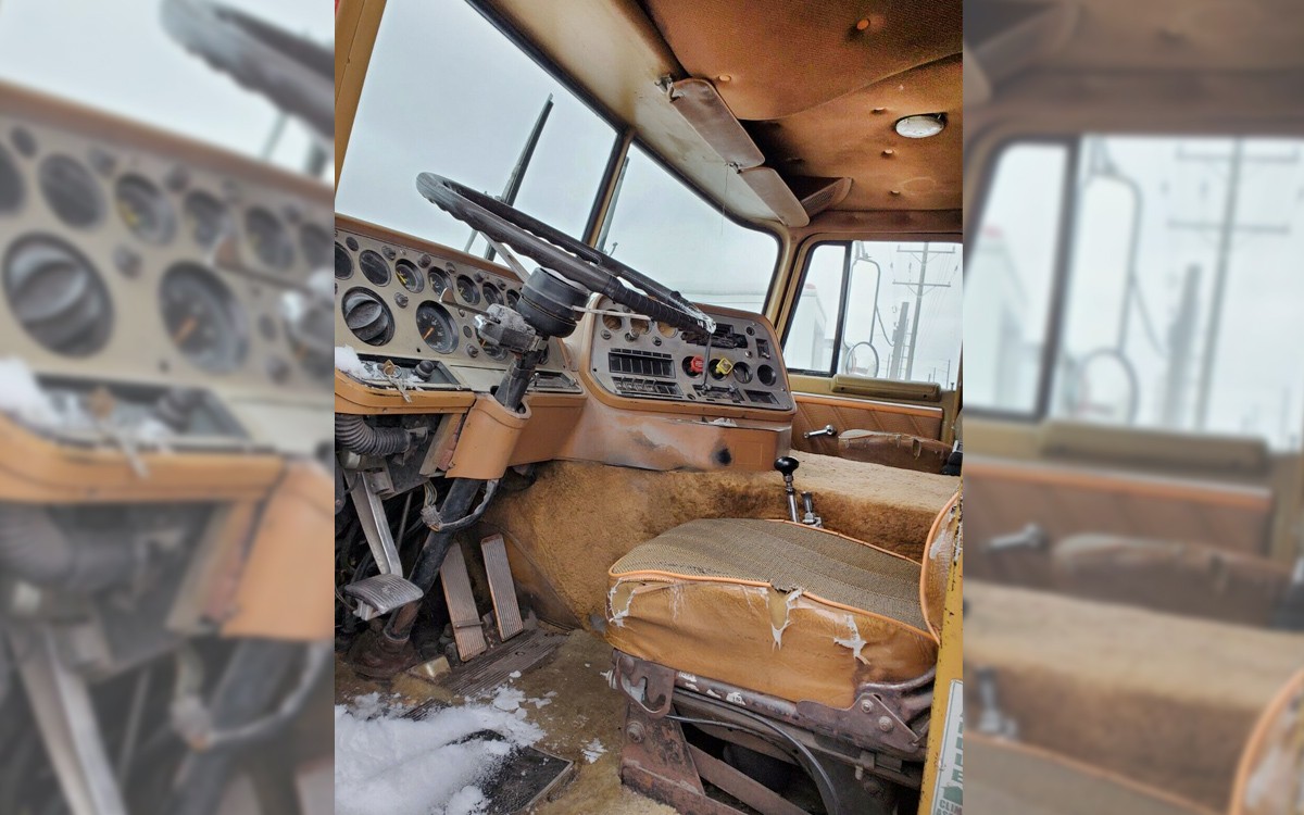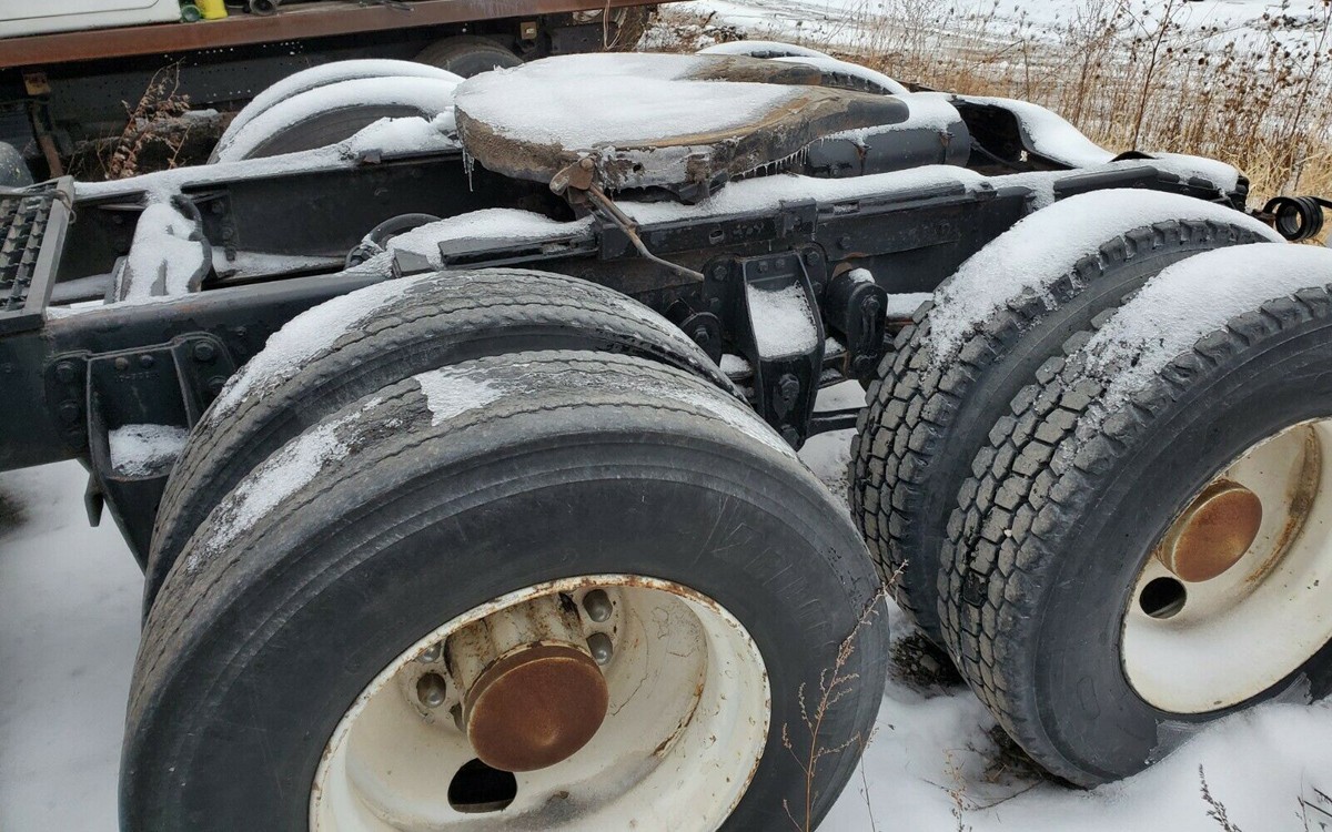 The seller says that this tractor was “farmer used” for the last two decades and it runs well. Being a cabover, the cab literally tilts forward, in this case by either an optional air pump or a manual hydraulic pump. There are no engine photos which is understandable but still disappointing. The seller says that it’s a Cummins and from what I’ve read on forums and in sales literature, a Caterpillar diesel and Detroit diesel would have also been available. Of course, Ford also provided engines. The chassis would have had three coats of primer and paint and could have been color-matched to the body.