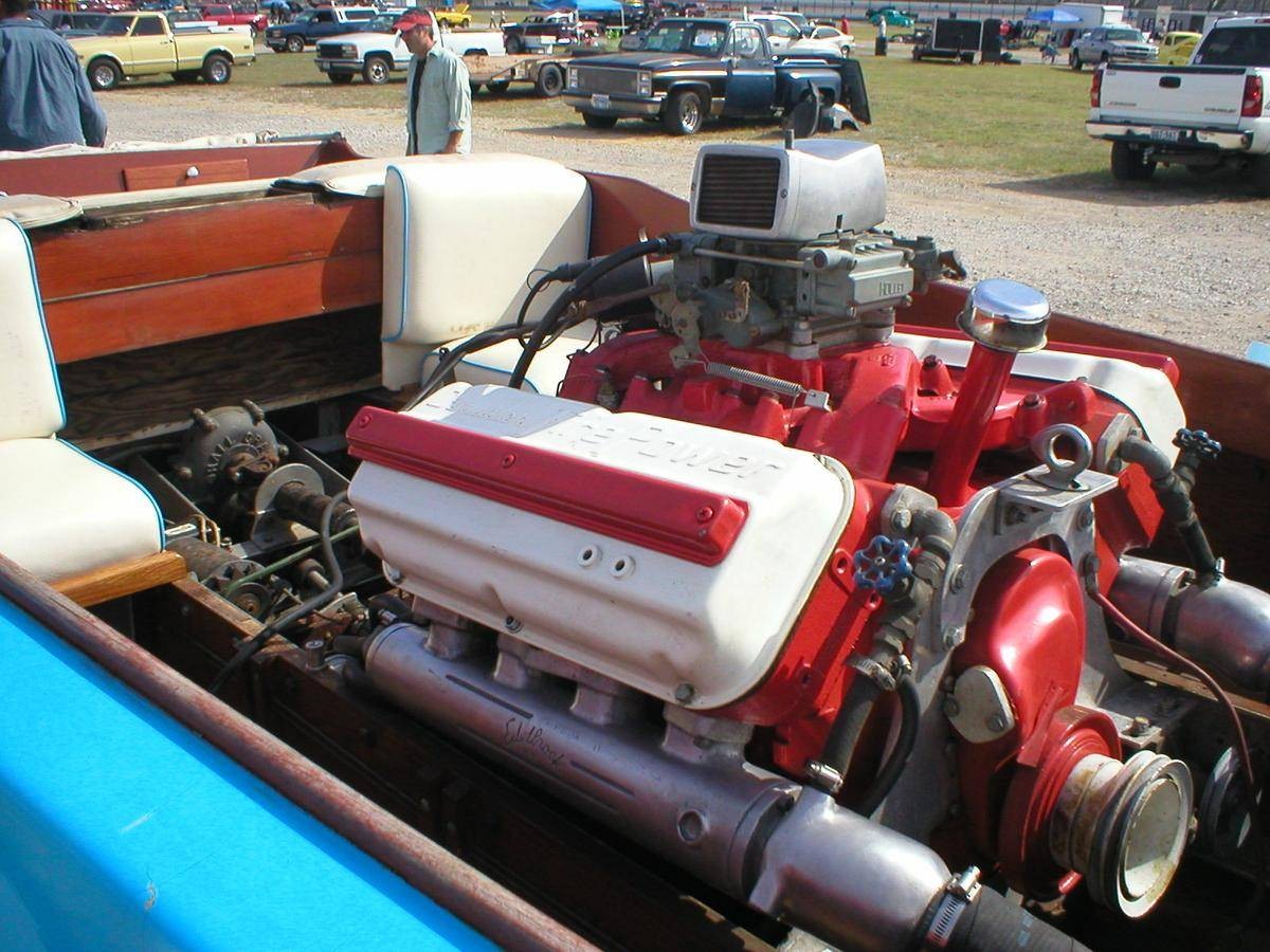 We used to water ski/fish every weekend on Shasta Lake with a similar red/white inboard/V Drive boat. It had a sloped padded/upholstered cover over the 4 cylinder engine that us kids sat on for more seating & 2 seats in the rear. It ended up named “To Hell With The Yardwork”