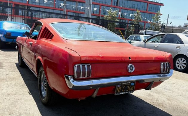 When the so-called “1964 ½” Mustangs went on sale in mid-1964, only coupes and convertibles were offered. It wasn’t until the beginning of the official 1965 model year in the Fall that the fastback became available. When the curtain closed on “1965”, 680,000 Mustangs had already found homes, 77,000 of them being the swoopy new fastback like the seller’s car. This one sports what is probably Rangoon Red paint, though faded and chipped over the years.