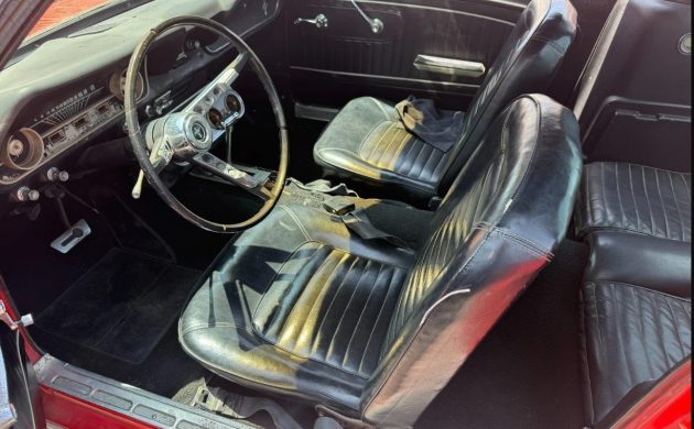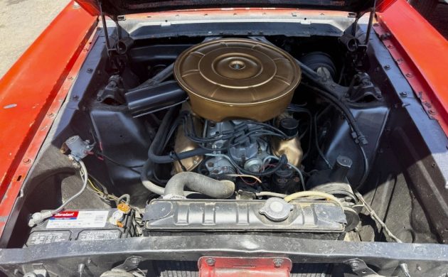 This Ford has what was probably the best-selling Mustang engine of the period, a C-Code 289 cubic-inch V8 with a 2-barrel carburetor. The factory rating was 200 hp, ample power for a light automobile such as this. Though we’re told it drives well enough, there is a little lifter noise to be sorted out (perhaps from sitting?). The seller provides two odometer readings, 77,318 miles and 51,857, so which is it?