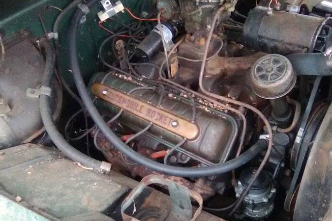 Buy it, pull that 303, build a 394–stroked into the 450 range, four speed Hydromatic, , this all bolts in nice and stock like, polish the body and go! These things are a rocket—Oh yea,, a Rocket 88
