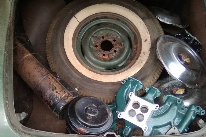 As with many cars being sold as projects, the trunk is full of things that the new owner will need for this car! As the seller mentions, all of the exterior emblems and trim appear to be in place and in good condition, with the wheel covers being the only missing attribute. There appear to be at least three of them in the trunk, and the seller notes “original hubcaps” in the ad so hopefully they are all there! There is also a fresh-looking 4 barrel intake manifold in the trunk, which could be a fun upgrade for the right person. There are no interior pictures, but I think with some minor work and a good buff, this car would be ready to cruise!