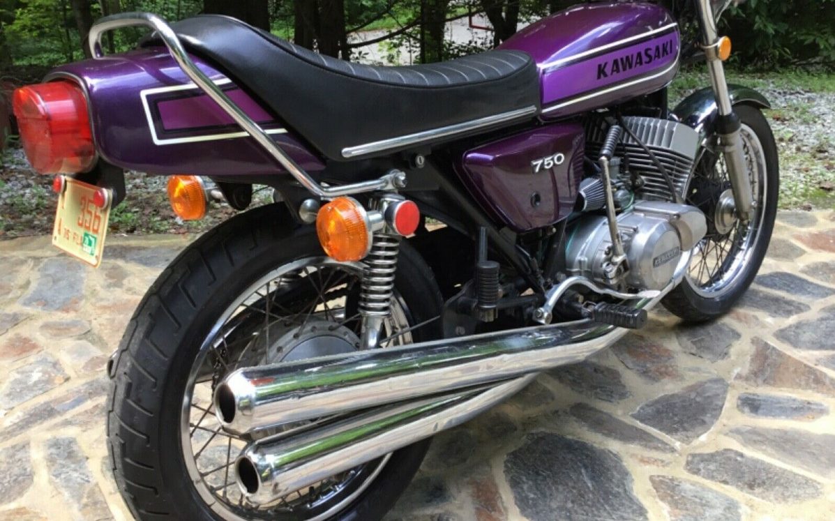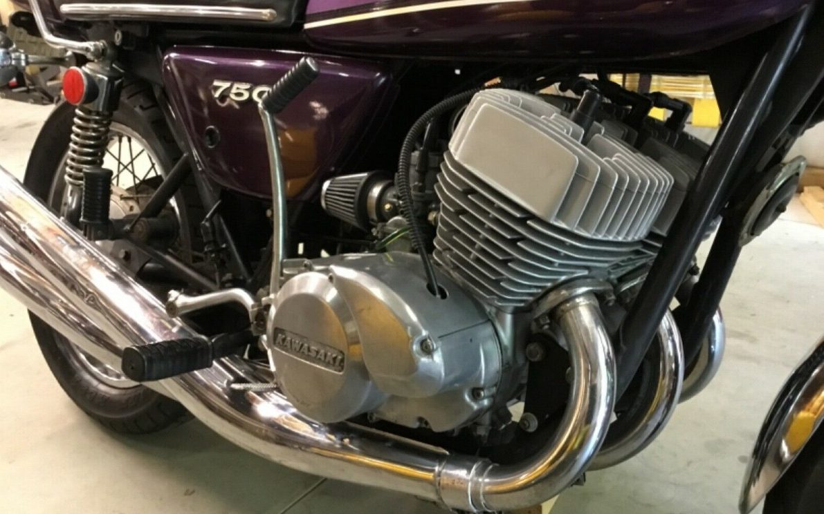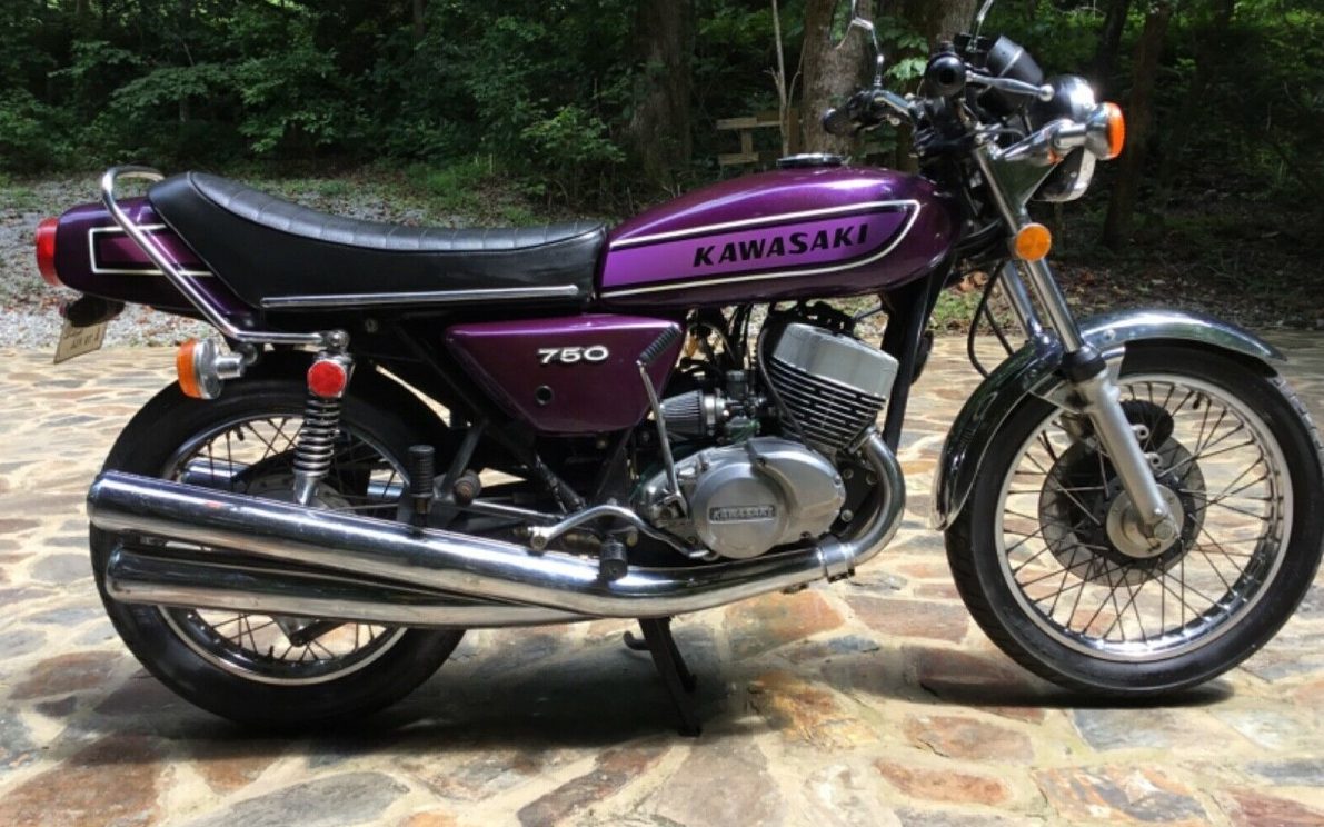 Internal combustion engines usually have an even number of cylinders; lawnmowers and motorcycles are frequently a single, or a bike can be a double too. Fours, in-line sixes, V6s and V8s are the province of cars and trucks. There has been the occasional V10, and V12’s abounded at one-time in high-end, uber-expensive automobiles. Odd numbers? Not so much so though Audi produced a five-cylinder and Saab had a three many years ago. But three cylinders did find its way to motorcycles and that arrangement proved to be a very successful architecture for Kawasaki back in the ’70s. I know that I haven’t seen a member of Kawasaki’s “Triple” Mach series in years so when this 750 CC H2 Mach IV turned up, I thought it worth a look-see. Located in Marietta, South Carolina is this 1975 Kasawki H2 750 and it is available here on eBay for a current bid of $13,500, eighteen bids tendered as of this writing.