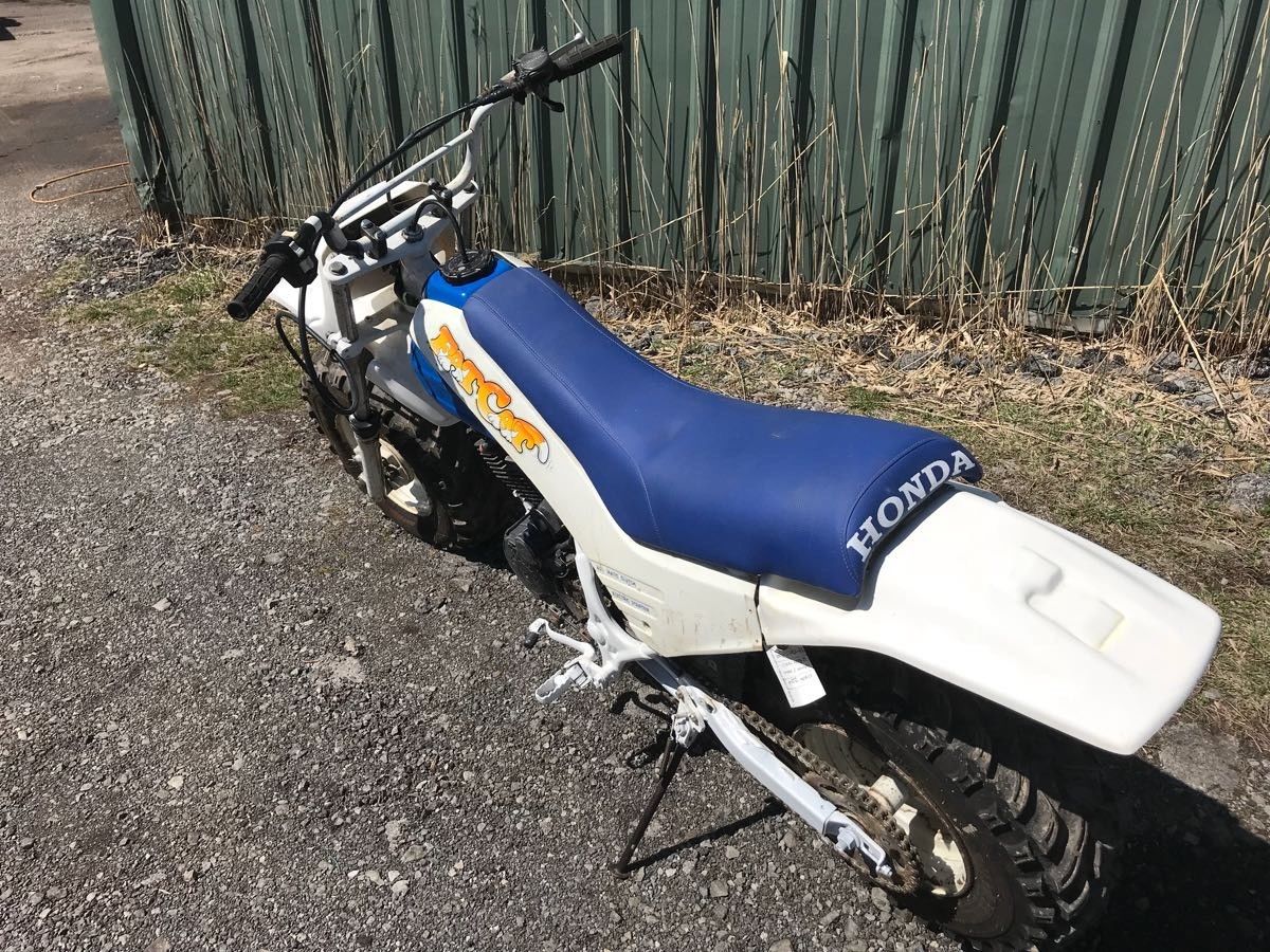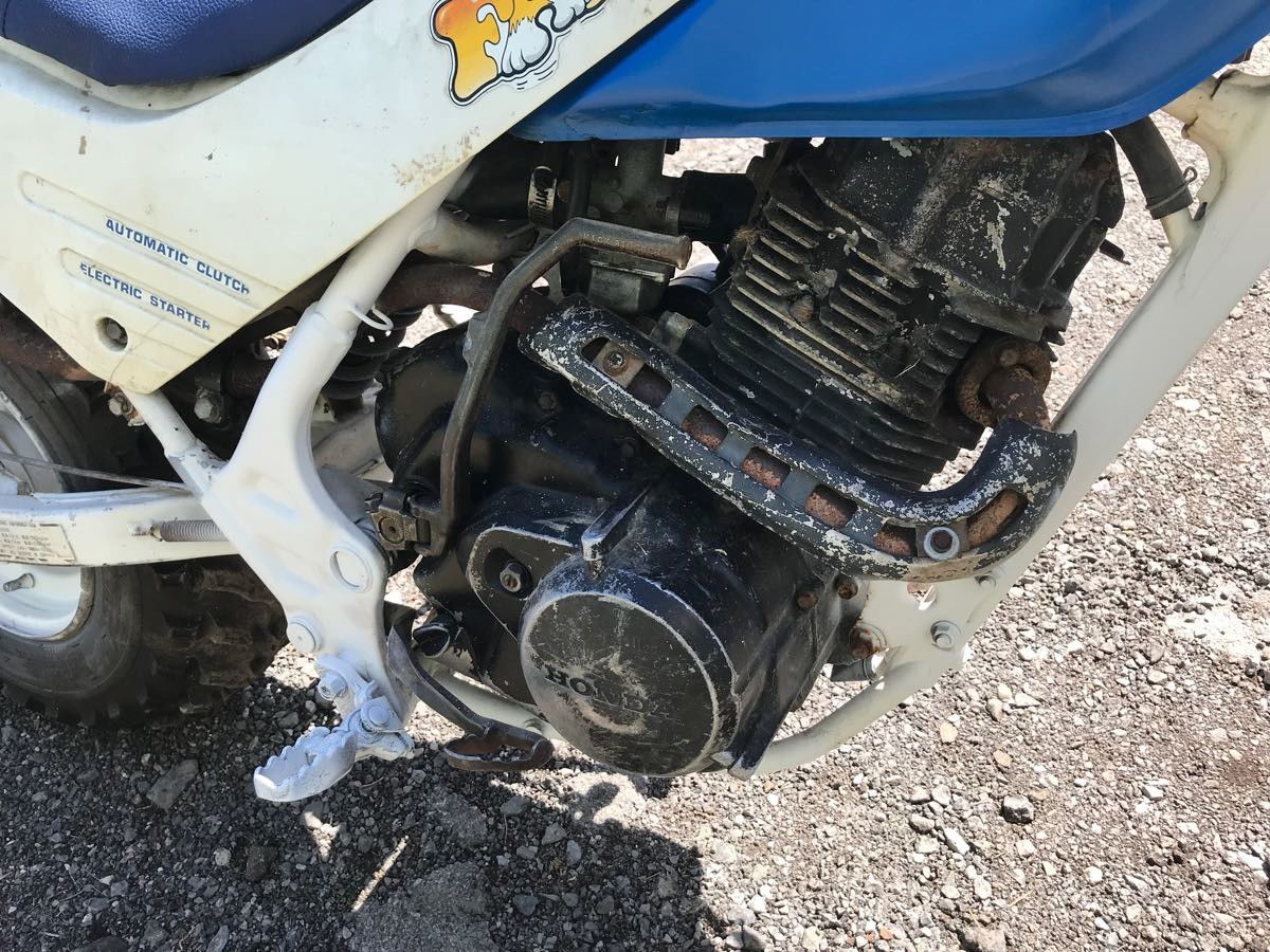 The Honda TR200, or Fat Cat, was a response to Yamaha’s BW200 “Big Wheel” which was made for twice as long as Honda’s Fat Cat was. Honda only produced this unusual bike for the 1986 and 1987 model years and as such these are much more rare than the Yamaha Big Wheel models are. But, they also aren’t as.. how should I put this, they aren’t as serious of a motorcycle for experienced riders. They’re really geared more for beginners without the use of a hand clutch and with a less sophisticated suspension. I don’t care, I still want one for the Honda wing of the garage (i.e., corner). This one would get a full restoration under my watch, I like my little bikes to be as show-ready as they are ride-ready. Luckily, graphics are still available for this model. At 264 pounds this thing weighs over 100 pounds more than I do, I’d better hit the buffet more regularly.