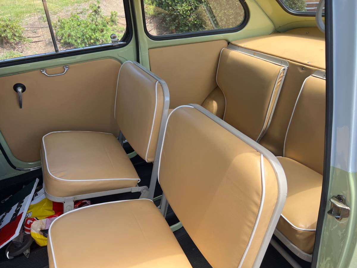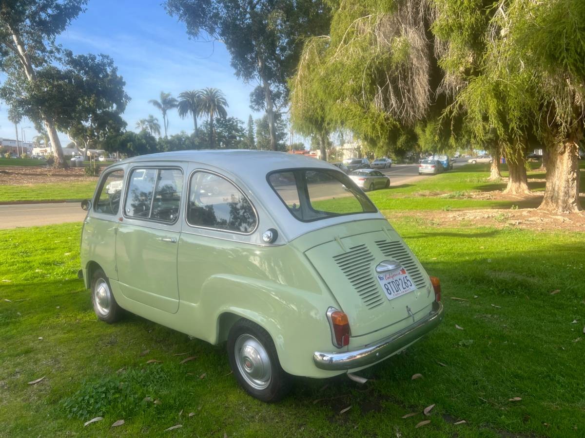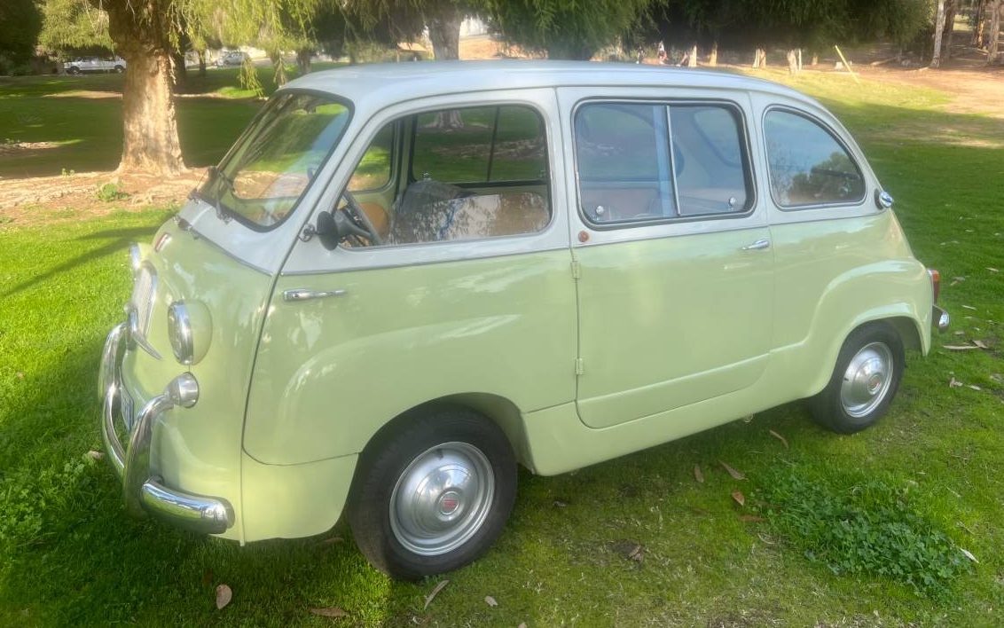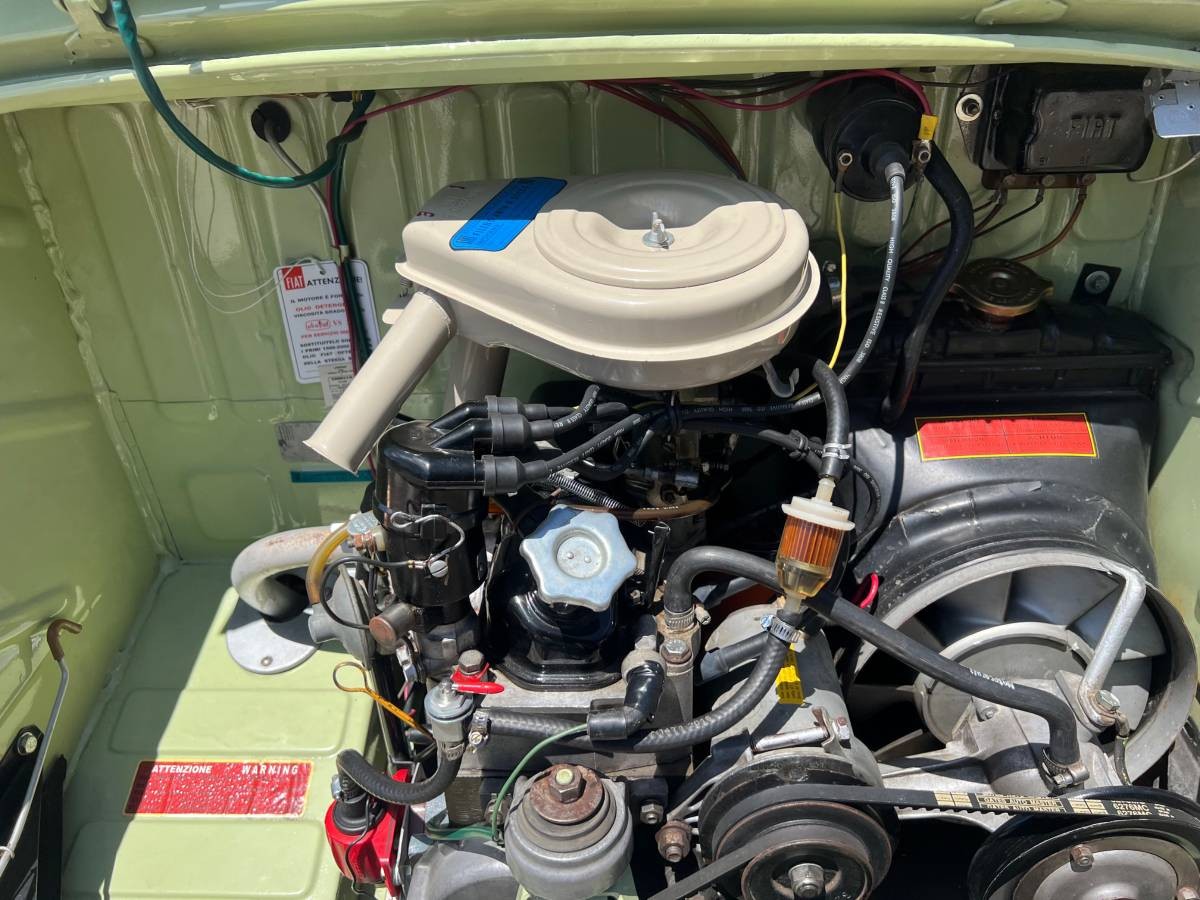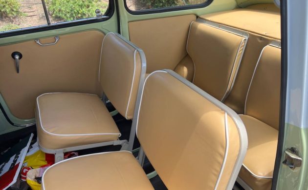 This example is the six-passenger version, though if you’re moving house, the seats fold down. Who knows how much you could cram in here. Lots. The metal-framed, white-piped seating strikes the perfect note, and just to flag a luxury credential for this tiny people-mover: those door pulls are aluminum and were used on fancy cars from Abarth and Lancia – not just the pedestrian fare from Fiat. The gauges are visible and sensible, though the metrics covered are only the basics. The seller managed to source the spare tire stowage bag for the passenger footwell.