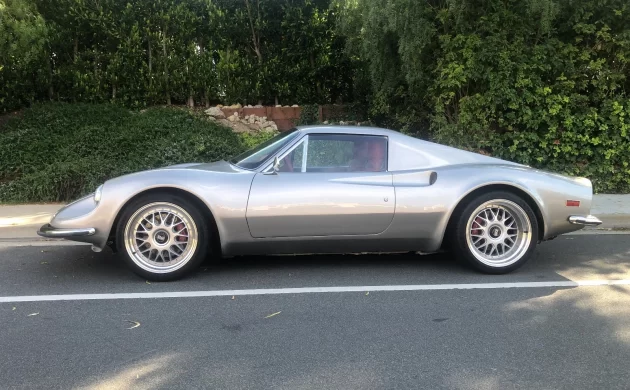 Here’s your chance to own a coveted sportscar on a normal person’s budget. Or at least, to own a car that very much looks like a certain coveted sporscar, if a Dino is your cup of tea. That is, if you don’t open the doors, or hood. Or trunk, because the car in question, a tip turned up by Curvette, is actually a Porsche Boxster from the 2000 model year with redone body panels that replicate the Dino. See it here on ebay in all its glory. Then, if you decide a kit car (the ad’s language) is for you, you can meet the seller’s asking price. That means that you have 16 days to come up with $125,000. You’ll then find a way to get to Lakewood, CA, to pick up your car. I might suggest the Long Beach Airport as a hassle-free variant on flying into LAX.