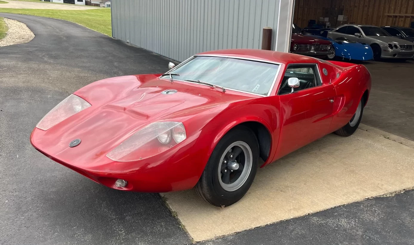 I think that would be the Fiberfab Valkyrie. Essentially an Avenger with a purpose built space frame, using a Corvair transaxle and a Chevy small block. At least that is the only engine I ever saw in one.