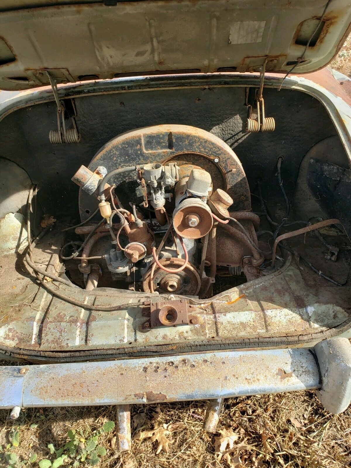 The early production Karmann Ghias are indeed more desirable than their newer siblings, and the seller claims he’s seen restored examples reach six-figures. I’m sure it’s happened, but it’s rare – and this one needs enough work that I’m not sure it’s worth doing a proper restoration on. I’d live with the patina’d finish and fix the floors, along with a spot of rot-through the seller noted around the bottom of the hood. All glass looks good and four matching hubcaps are still attached.