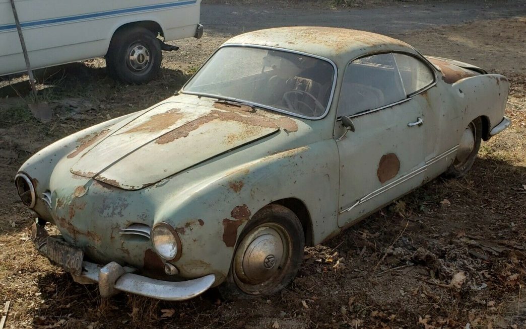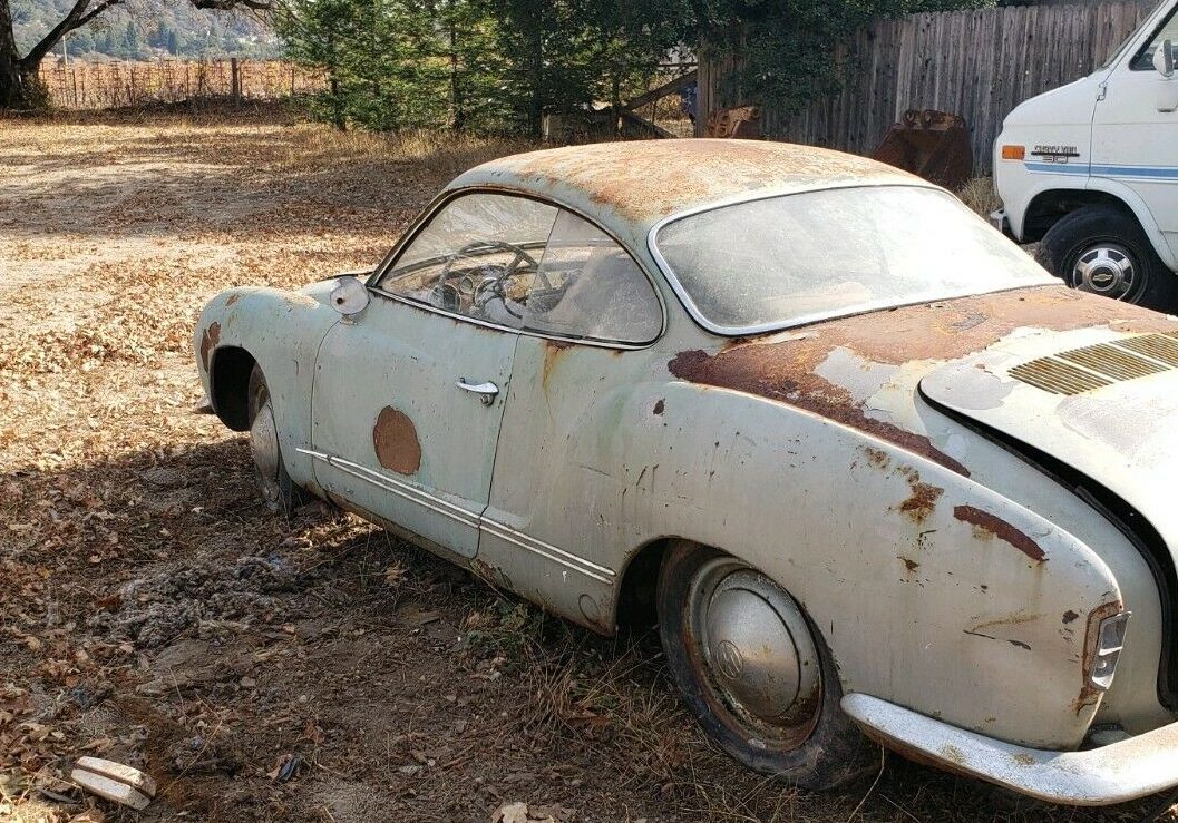 This 1958 Volkswagen Karmann Ghia is described as a desirable low-light model that has unfortunately been left to deteriorate outdoors while awaiting restoration. The seller claims to have bought the car with every intention of restoring it, but outdoor storage on a dirt surface caused the floors to rot out. The body is coated in surface rust, and while it does have an engine, it is not matching (but supposedly correctly date-coded.) Find the Karmann Ghia here on eBay with bidding over $3K and no reserve.