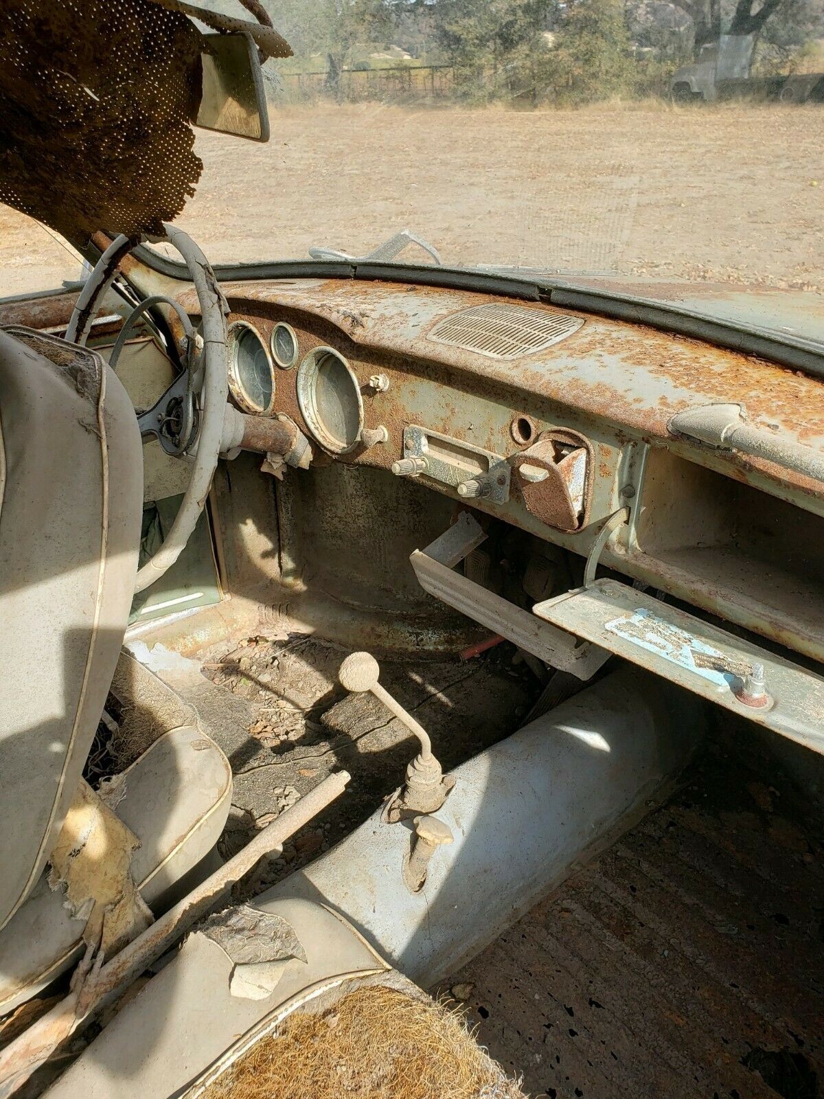 The interior reveals years of sun and moisture exposure, with surface rust coating the dash and the seats looking plenty threadbare. As noted, the floors will need replacing, but so will everything else is perfection is a goal. The seller notes that he did try sanding the body in spots, and it easily cleaned through the surface rust in that spot. Not saying it’s particularly scientific, but the rust seen here is typical West Coast deterioration, and not Rust Belt annihilation. A big project but a worthy one? You decide.