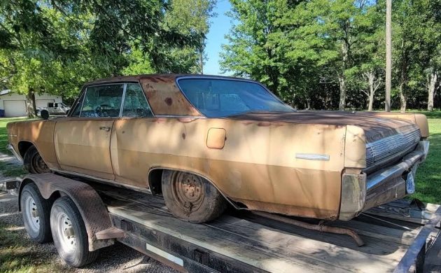 The 389 engine and automatic transmission are both present, but the seller says that the engine seems to be locked up, and this may be a case where the car wasn’t operational even before it got abandoned in a field. Interestingly, the one component on the entire auto that was attempted to be protected is the carburetor, which has been encapsulated by some square object. However, it would have probably been wiser to have invested that effort into better preserving the interior.