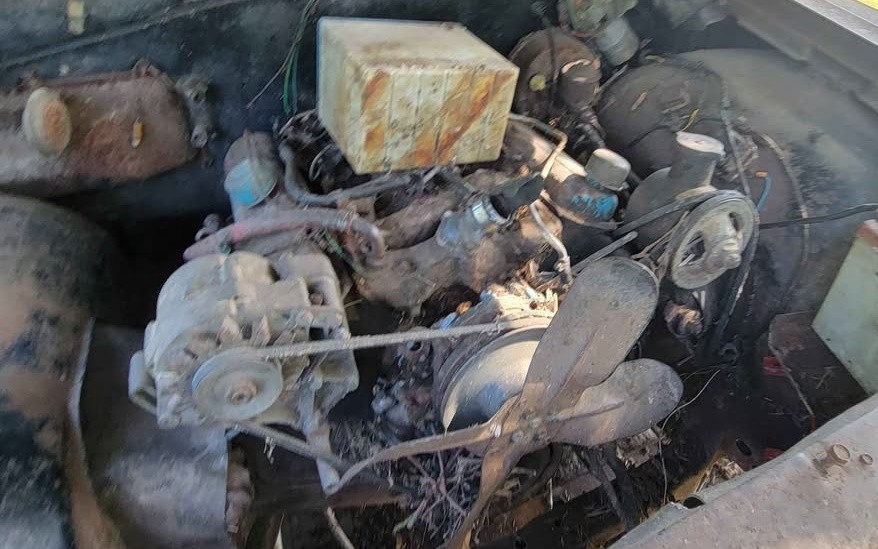 The 389 engine and automatic transmission are both present, but the seller says that the engine seems to be locked up, and this may be a case where the car wasn’t operational even before it got abandoned in a field. Interestingly, the one component on the entire auto that was attempted to be protected is the carburetor, which has been encapsulated by some square object. However, it would have probably been wiser to have invested that effort into better preserving the interior.