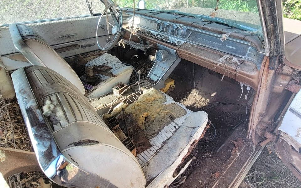 The exterior actually looks pretty good when compared to the inside, which shows the suffering it has gone through while enduring all seasons sitting in a Kansas field. It’s cool that Pontiac chose to equip the early GP cars with bucket seats and a console, but it’ll take lots of time and effort to get these and the other interior parts anywhere near back to the condition they began in. Are you seeing any promise for getting this 1963 Pontiac Grand Prix back on the road soon, or would it be better to just return this one to the pasture?