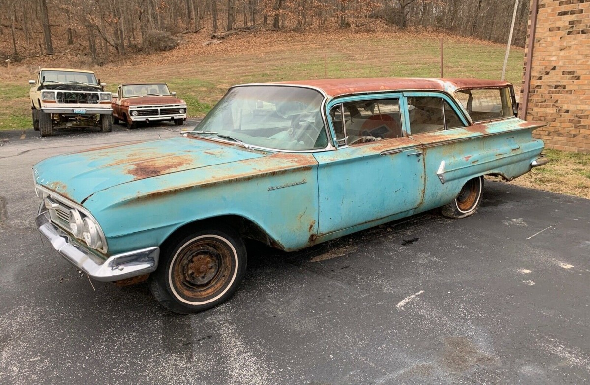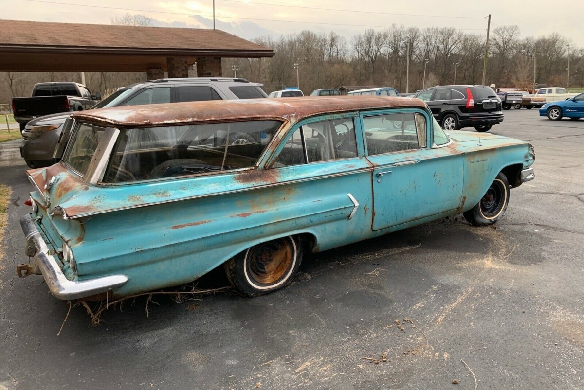 I’m with Evan, love A 2 dr wagon, especially this 60. Killer when its finished. 348, 4 or 5 speed would be cool. This ones a ruffian. Like steve the glass is the valuable part is the glass. Another plus to me is that its a plain jane Biscayne. Good luck and happy motoring!