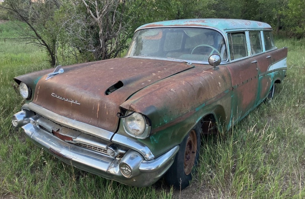 In “Tri-Five” circles, most of the interest in 1955-57 Chevrolet station wagons falls to the Bel Air Nomad, a 2-door wagon with its own sporty body. Low production numbers mean they can be very valuable today with collectors. Of less interest are the better-selling 4-door wagons like the seller’s weather-worn ’57 210. It looks like it has been sitting outdoors for years and will require a complete restoration. Found in rural Oakley, Kansas, this two-tone project is available here on eBay where $1,825 is where the bidding stands.