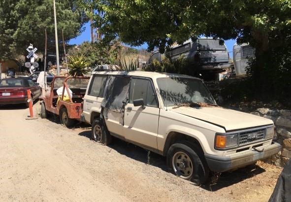 Located in a field in Temecula, California is an assortment of cars, trucks and various equipment that have been accumulated over time. Apparently, the owner of the property would find a vehicle or machine, bring it back, leave it there, and then repeat the process over again. And again. And again. The seller seems to have lost the hoarding bug and has recruited a friend to help him liquidate the arsenel. We’re told they all ran at some point (duh) and some are in better condition than others. Each is priced accordingly here on craigslist. Thanks to Doug from Riverside for the tip!