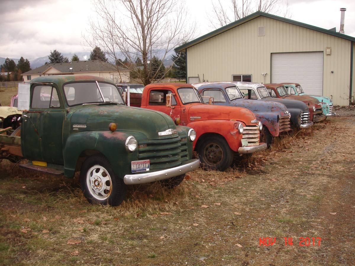 This is literally a field full of my dream trucks. I love 1949 3100s.