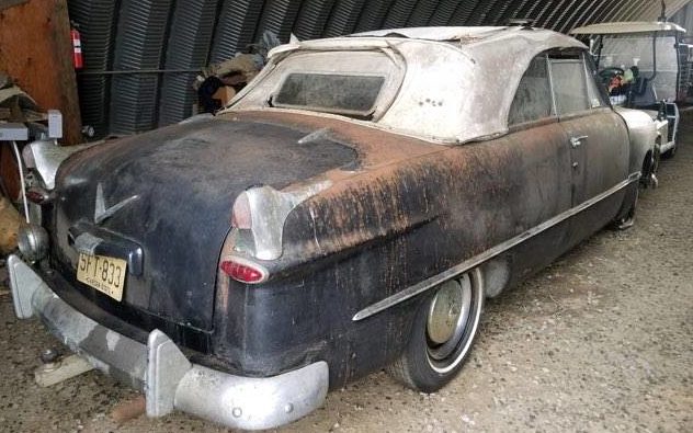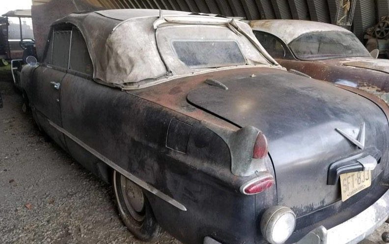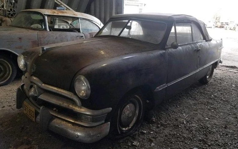 Those fake “fins” would be one of the first things to go. That, and the stupid spotlights on the rear bumper. The cvt. top is of the same style these `50’s left the factory with–no telling if it’s ever been replaced, but it needs it. Me, I’d restore this to showroom new. All kinds of reproduction parts exist for these; 1950 was a good year for Ford because they got most all of the bugs out of it that existed in the `49 (first year) models.