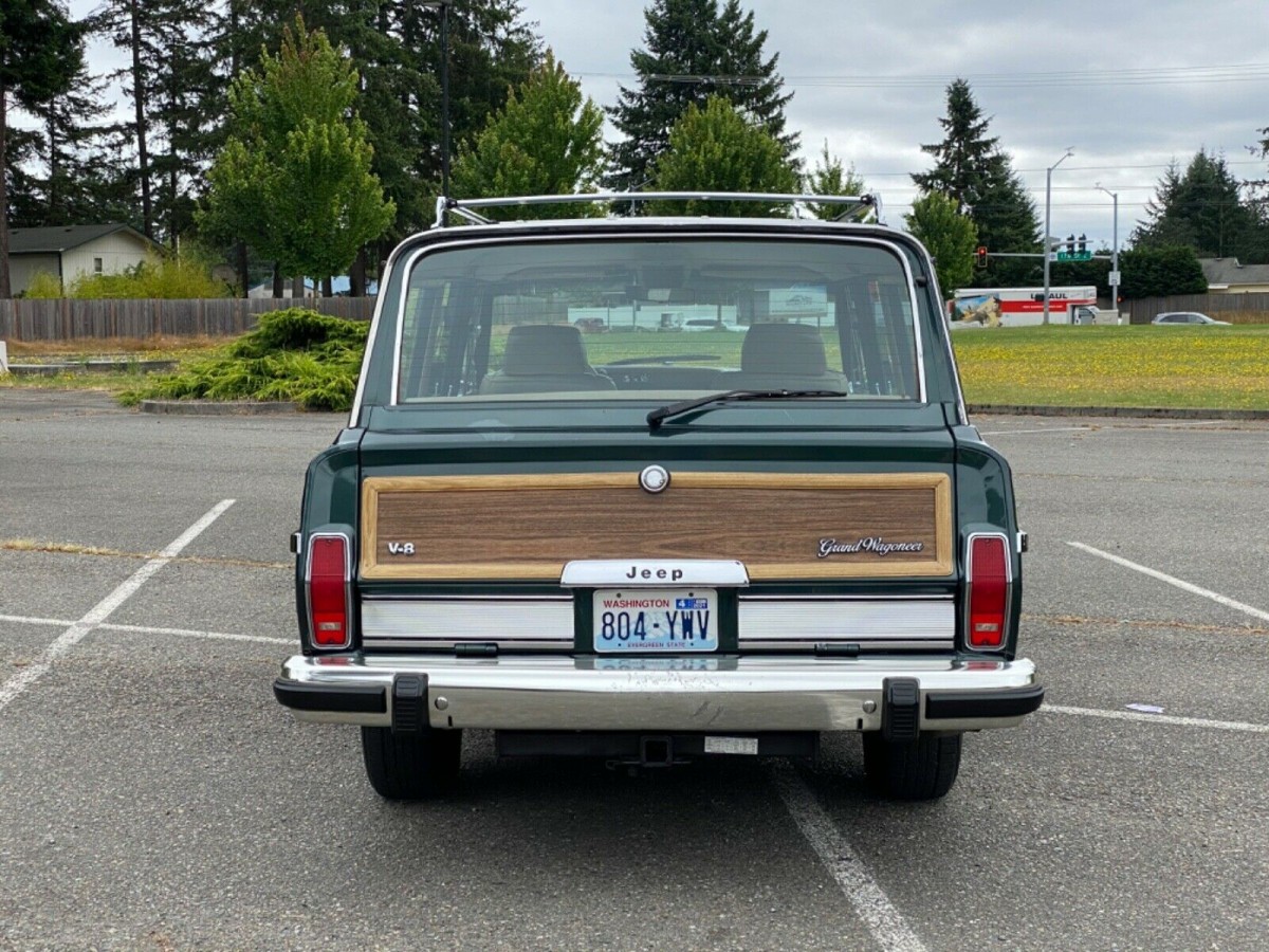 Grand SUV! I have owned a 1988, 1989 and purchased a 1991 Final Edition that I still own (84,000 miles). The 360 is rated at 144 HP only but have enough torque to drive to pull a stump out of the ground if needed! A place in Texas and another in New York will take late model (1985-1991) Grand Wagoneers and restore with some modern updates like fuel injection and see for often times over $60K. The Hunter Green Metallic I believe was the rarest color. My GW is the Gray Mist Metallic with the burgundy interior. Remains a fun vehicle to take to Coffee and Cars or other events And my children all have fond memories of riding in “James”! Good luck to the seller and I know the new owner will enjoy their Jeep.