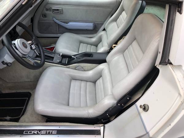 The paint is said to be original, and it’s a sharp two-tone job with white over gray. The aftermarket wheels may be a bit jarring at first, as we don’t normally associate the mesh-style wheels with American makes – they’re usually found solely on European models – but it actually works quite well, in my opinion. It gives the C3 a different vibe, maybe even a slight air of sophistication. The Corvette features a T-top roof, and given the condition of the interior, it doesn’t appear to be suffering from any bad seals leading to leaks. It’s hard to assess whether the paint is still in good order, but it’s at least a solid 15-footer.