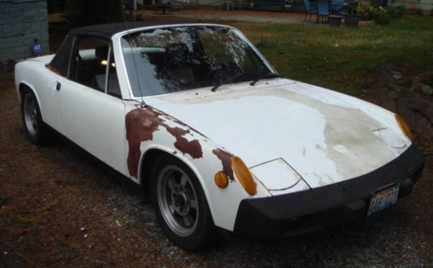 Listed on craigslist for $3,750 in Kent, this 1975 Porsche 914. According to the seller, the car was originally orange, hasn’t suffered any major accidents, and both the front and rear ends remain straight. While there’s evidence of some older bodywork repairs, the seller is upfront that this is a 50-year-old car that will need rust repair and mechanical work before hitting the road again. Thanks for the tip Barney!