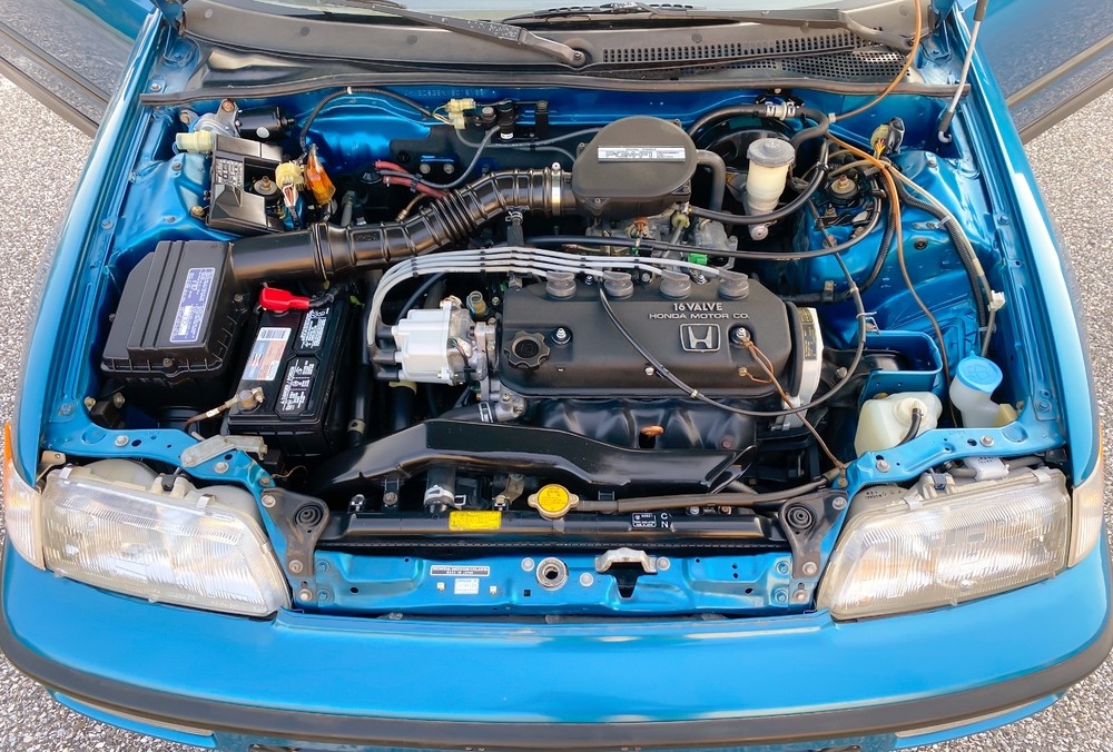The engine bay looks very tidy, here we see the 1.5 liter sixteen valve engine. This engine has Hondas PGM Dual Point injection which is a throttle body type fuel injection, SI models had multiport fuel injection. This car looks overall to be in great shape and will make a fun daily commuter. Hopefully its mechanically sorted out, sometimes these low mileage cars need some refreshing before being able to hit the road. Let’s hope the originality is preserved by the next owner.